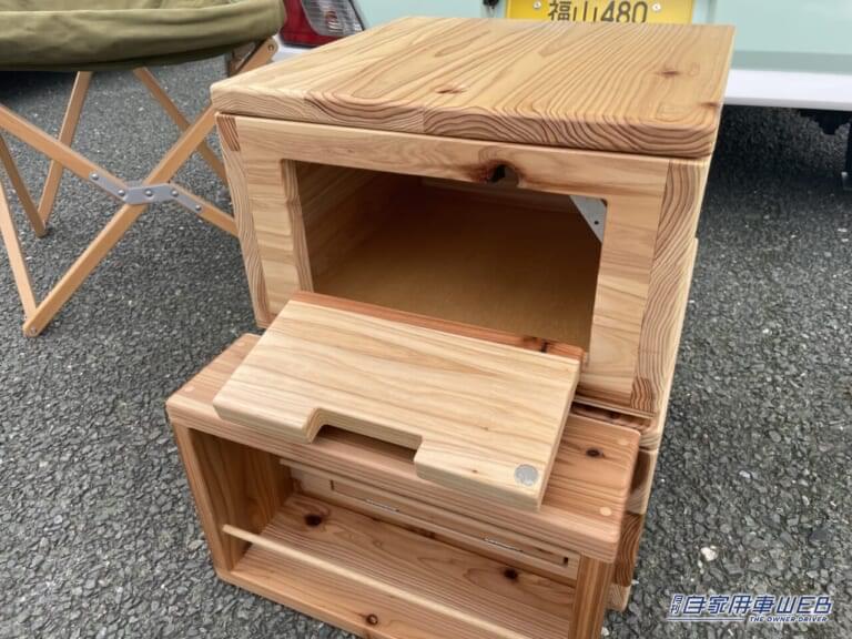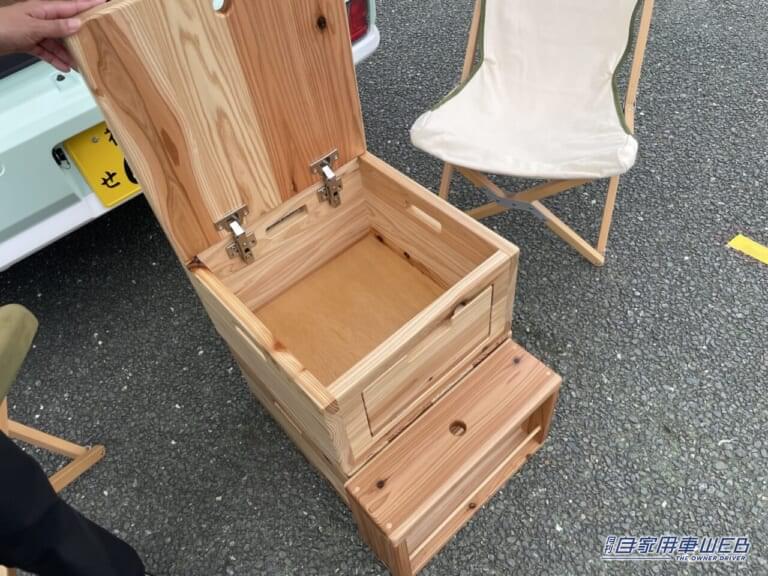 また、木箱を外に置くだけで、テーブルをすぐに設置することもできる。上面と側面どちらからも開けることができるのは非常に便利だ。