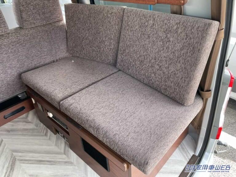 一般的にはハイエースクラスでようやく搭載されるようなこれらの装備が、コンパクトなタウンエースベースのキャンパーに惜しみなく搭載されている点は特筆に値する。全長と全幅に余裕があることから、ソロ旅用に作られてはいるが、実際には大人2人でも問題なく車中泊が可能なスペースが広がっている。