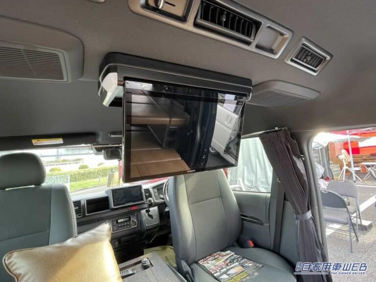 また、カロッツェリア製の13.3インチフリップダウンモニターも装着できる。大画面で動画を楽しめる車内空間は、もはや移動式リビングそのものだ。