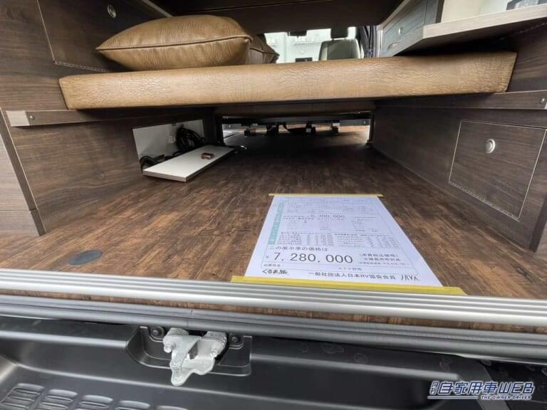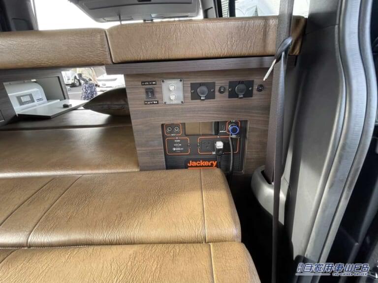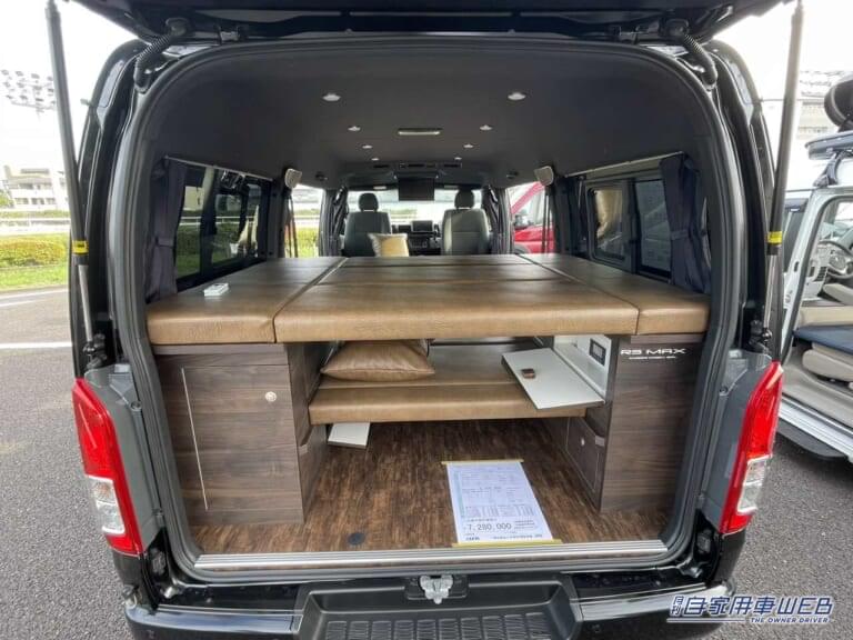 RS MAXはただベッドを積んだだけのバンではない。最新の電装アイテムで、現代のライフスタイルにマッチする快適性も備えている。ポータブルバッテリーやフリップダウンモニター、サイバーナビといった機能を追加でき、車内はまさに”モバイルリビング”だ。