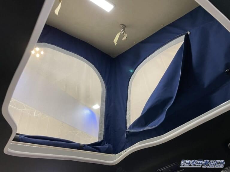 また、全窓にはプライバシーカーテンを装着可能。フロント・サイド・リアのすべての窓を覆えるため、車内はしっかりとプライベート空間になる。カーテンの取り付けはフックやスナップホックで手軽に行える仕様で、慣れれば数分で全体をセットできる。旅の途中に安心してくつろげる空間を確保するうえで、非常に頼もしい装備だ。