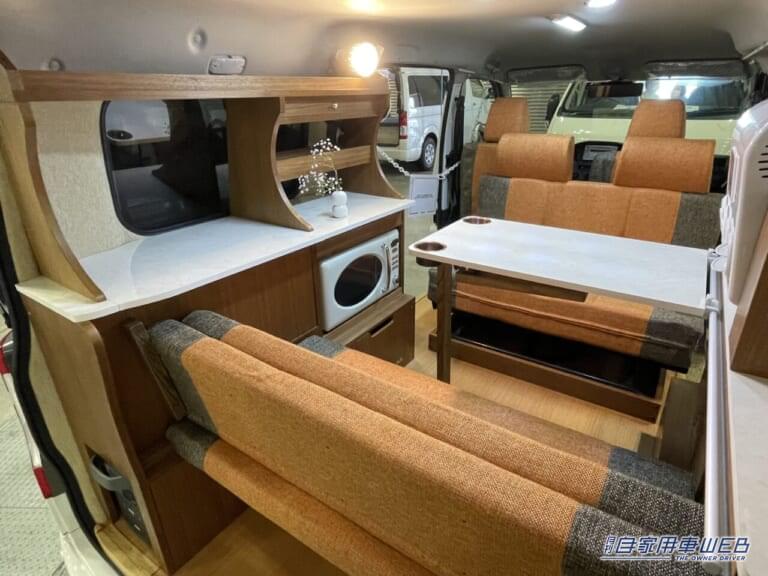 コンパクトなバンをベースに、驚くほど快適な空間を実現した1台が紹介しよう。室内にはベッドや収納、テーブルをしっかり備え、まさに“動くプライベートルーム”といえる仕上がり。日常の延長線で使える気軽さと、旅先でもくつろげる本格性を両立しており、ライトユーザーから本格派まで幅広い層にフィットする。キャンプをしない人にも刺さる、新しいタウンエースのかたちだ。