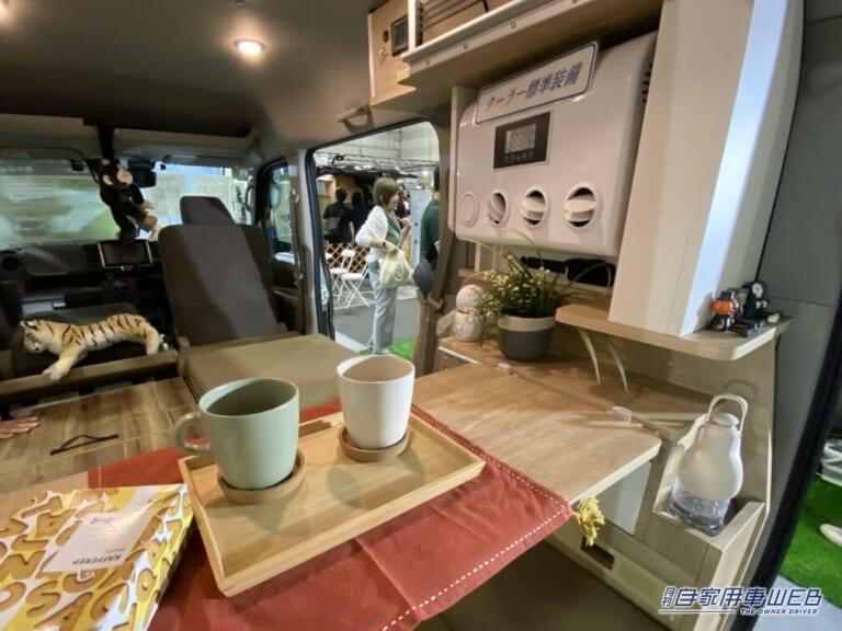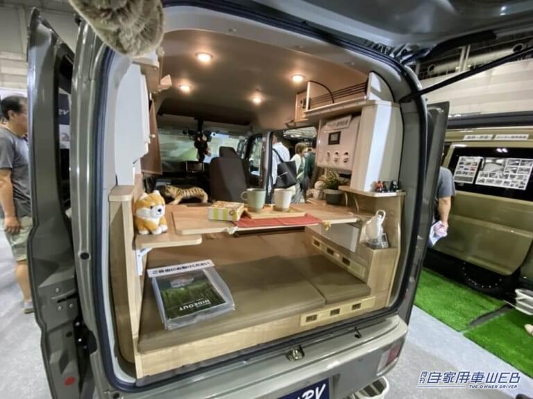 展示車両には動物のぬいぐるみが置かれていたが、これはペットとの旅行をイメージした演出でもある。コンパクトな軽キャンは、ペット連れにとって移動や滞在の負担が少ない。エアコン完備で温度管理がしやすく、窓の網戸もあるため安心して車内に一緒にいられる。収納スペースを上手く活用すれば、ペット用品もすっきり収められるだろう。愛犬と一緒にキャンプや釣りに出かけたいと考えるユーザーにとって、この車両は現実的な選択肢になり得る。