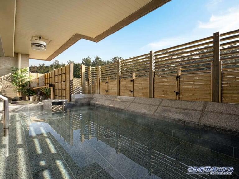 隣接するホテル内に設けられている露天風呂(15:00~23:00、6:00~10:00)。
