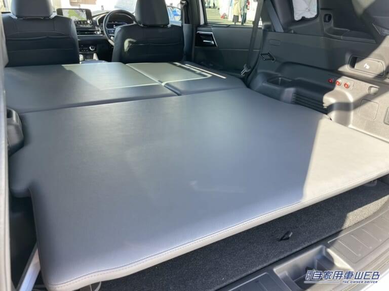 ポップアップルーフと並んで人気を集めるのが、車中泊専用のベッドキット「E:BED II」だ。大人2名が横になれるゆったりとしたベッドスペースを確保しながら、ベッド下は収納スペースとして活用できる構造になっている。キャンプギアや充電ケーブル、細かな荷物をスマートに整理できるため、車内が散らかりにくく快適に過ごせる。