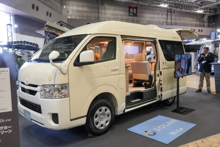 レクビィのキャンピングカーシリーズにおいて、特に「ペット好き」のユーザーから絶大な人気を誇るのが、ペットと快適に過ごせる専用装備や家庭用エアコンを備えている「ソラン」シリーズだ。ハイエースの可能性を感じさせてくれる稀有な一台だったのだ。