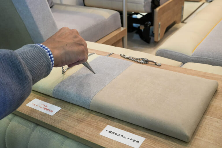 話を聞いた担当者によると、傷に強い生地はかなりの反響があるそうで、このモデルを指名買いするユーザーも多いとか。