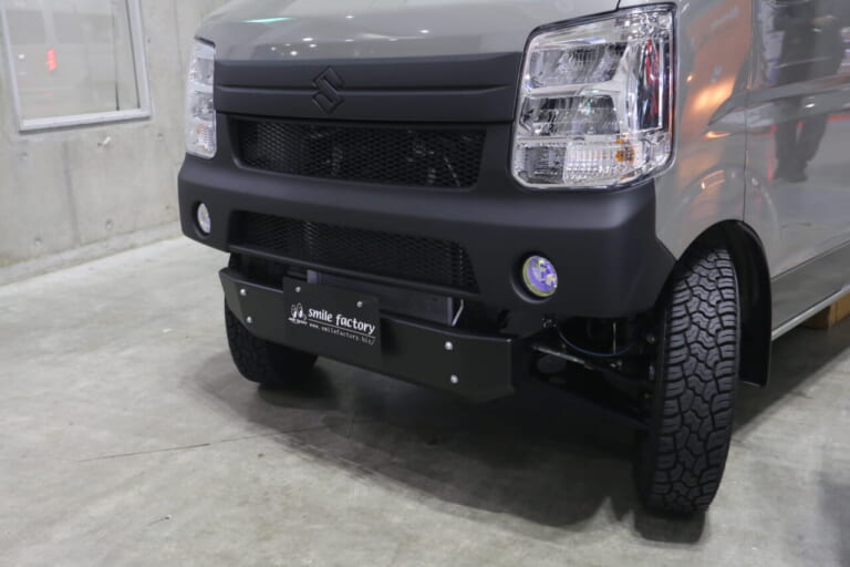 展示車両のオフタイムトラベラー2は、プラスワンの前後バンパーとMLJのエクストリームJアルミでカスタマイズ。