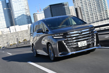 装着タイヤは、ヴェルファイアは225/55R19とアルファードよりも低扁平タイヤを装着。サスチューニングの違いもあって、走りは少し硬めな味付けだが、上級ミニバンにふさわしい快適さは損なっていない。