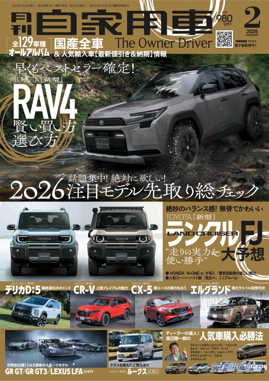 月刊自家用車 2026年2月号【詳細はこちら】【Amazonで購入する】