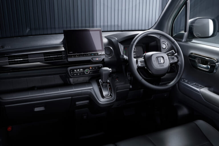 「BLACK STYLE」は、N-WGNカスタムをベースにブラックをアクセントとした内外装パーツを採用。エクステリアには、ベルリナブラック塗装のフロントグリルモールやフォグライトガーニッシュ、クリスタルブラック・パール塗装の電動格納式リモコンドアミラーなどが特別に装備され、インテリアはピアノブラック塗装の助手席インパネガーニッシュやドアオーナメントパネル(フロント/リヤ)、ステアリングガーニッシュなどを装着することで、さらに洗練されたデザインに仕上がっている。