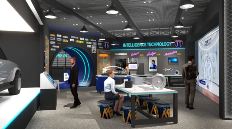 アイシンブースでは「心を動かす移動の未来」をコンセプトとした、来場者に新たな移動の価値を感じてもらうコンテンツが展示される。