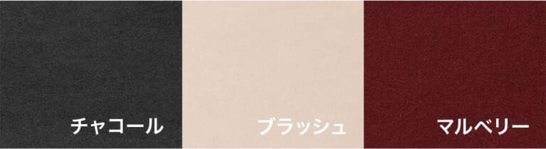 カラー展開は、チャコール、ブラッシュ、マルベリーの3種類。
