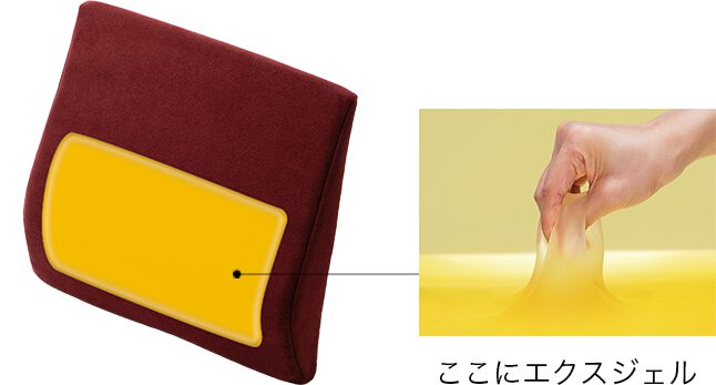 エクスジェルは「座る」を変える、体圧「流動」分散という特性を持っており、座ったときにお尻にかかる圧力を分散し、骨盤の角度と脊椎のカーブを正しく保つ理想的なシーティング状態へ導く効果を持っており、長くその姿勢を保つために不可欠な、座っている間に無意識に繰り返される体の「ズレ」に添う流動性も実現するため、「衝撃」「圧力」「ズレ」という座るときの問題を解決できるとのこと。