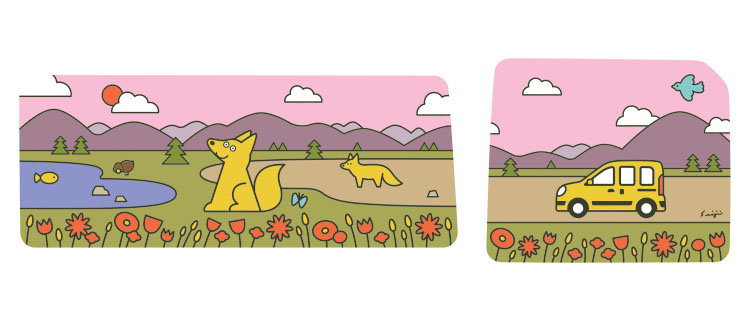 カングー線画のデザインがラインナップされている点も興味深い。車両そのものをモチーフにした図案は、カングーを愛するユーザーにとって象徴的な一枚となり得る。さらにフレンチブルドッグや森といったモチーフは、カングーが多様なライフスタイルと相性を持つことを反映している。ユーザーの“好き”に寄り添う柄が揃っていることで、カスタマイズの自由度が高いことが伝わってくる。