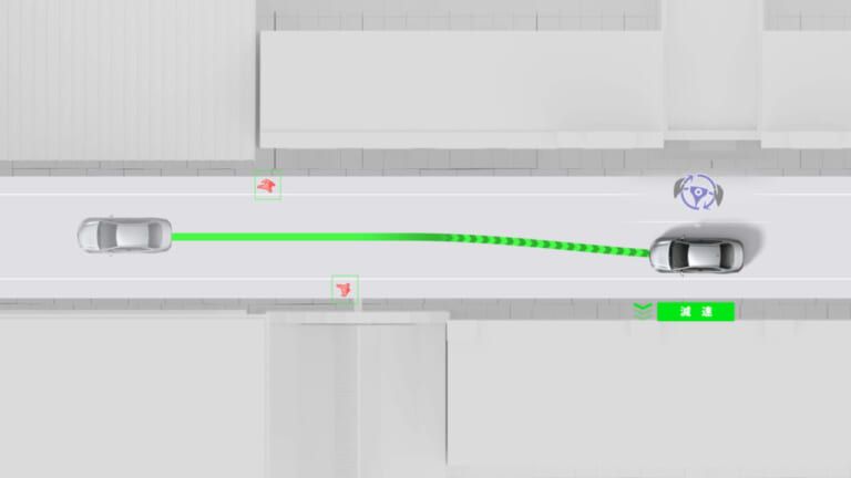 プロアクティブドライビングアシスト : 歩行者/自転車運転者/駐車車両に対する操舵・減速支援(作動イメージ)