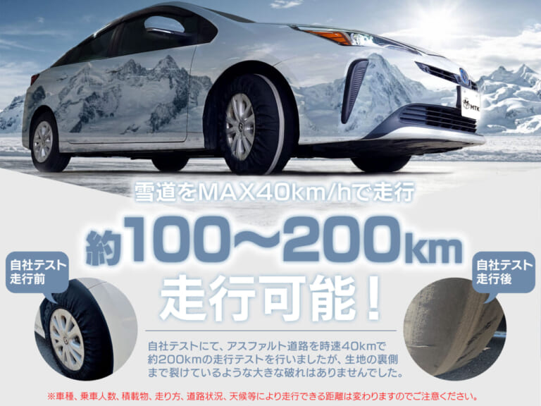 そこで紹介したいのが、今、新しいタイプとして注目されている布製タイヤチェーンだ。これは、金属ではなく耐久性が高く雪道でも滑りにくい生地を使用した、タイヤに被せるように装着するものでタイヤチェーンで、装着も簡単なものが多いのが特徴だ。