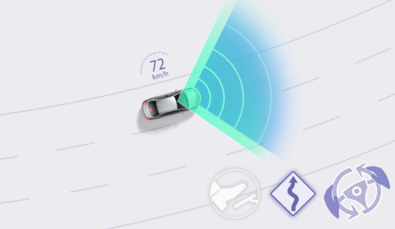 さらに高速道路での運転負荷を軽減するレーダークルーズコントロールも進化を遂げ、先行車に合わせた追従走行や停止に加え、カーブでの速度抑制機能も付加されている。