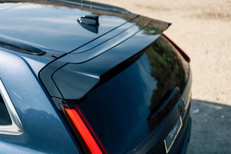 e:HEV RSブラックエディションにオススメする「Tough Premium」は、山頂をイメージした台形スタンスのフロントロアースカートや、立体的なサイドロアーガーニッシュ、テールゲートスポイラー、ブラックエンブレムを組み合わせることで重厚なギア感を演出。