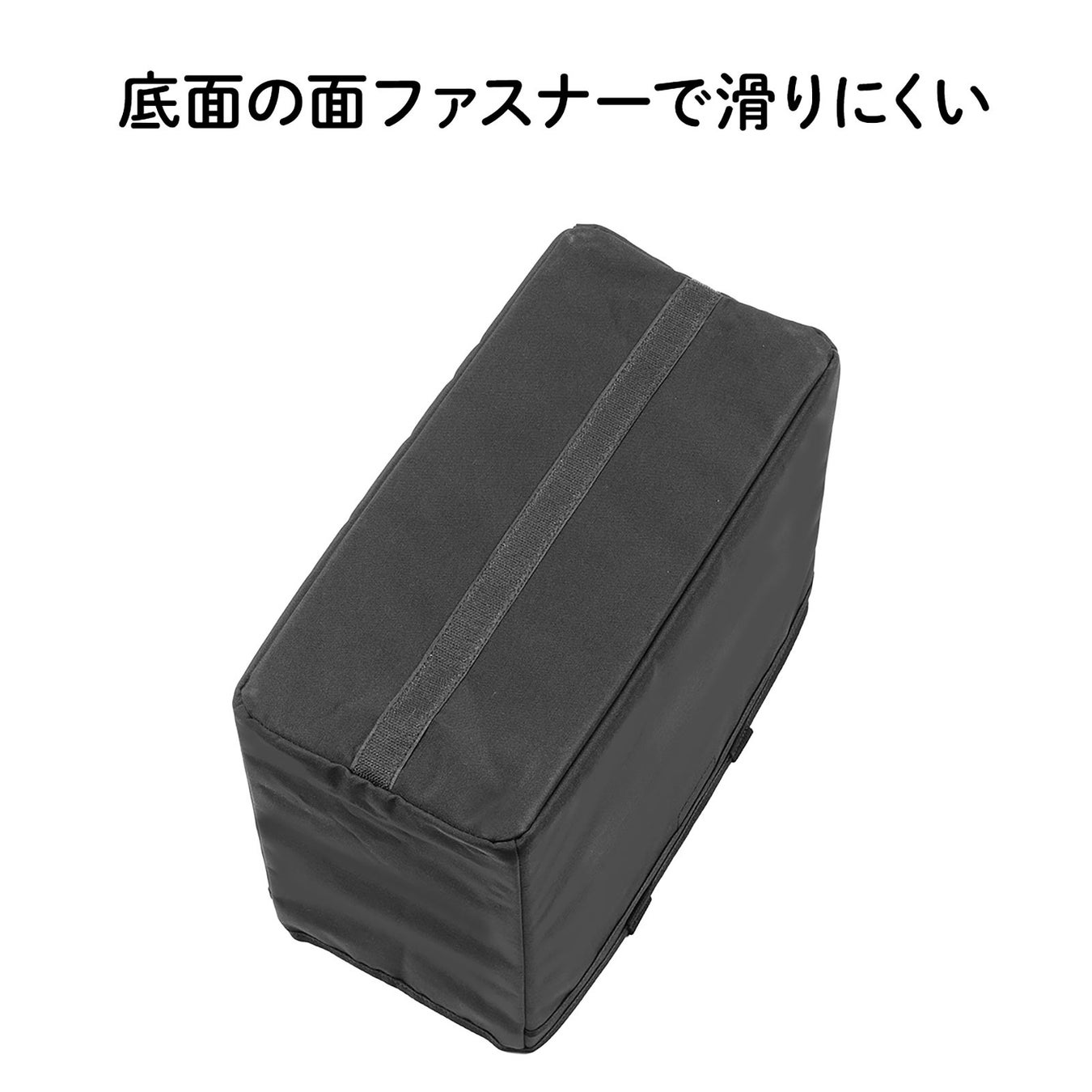 ボックス底面の面ファスナーがフロアカーペットに貼り付いて、走行中の振動によるずれを防ぎます。