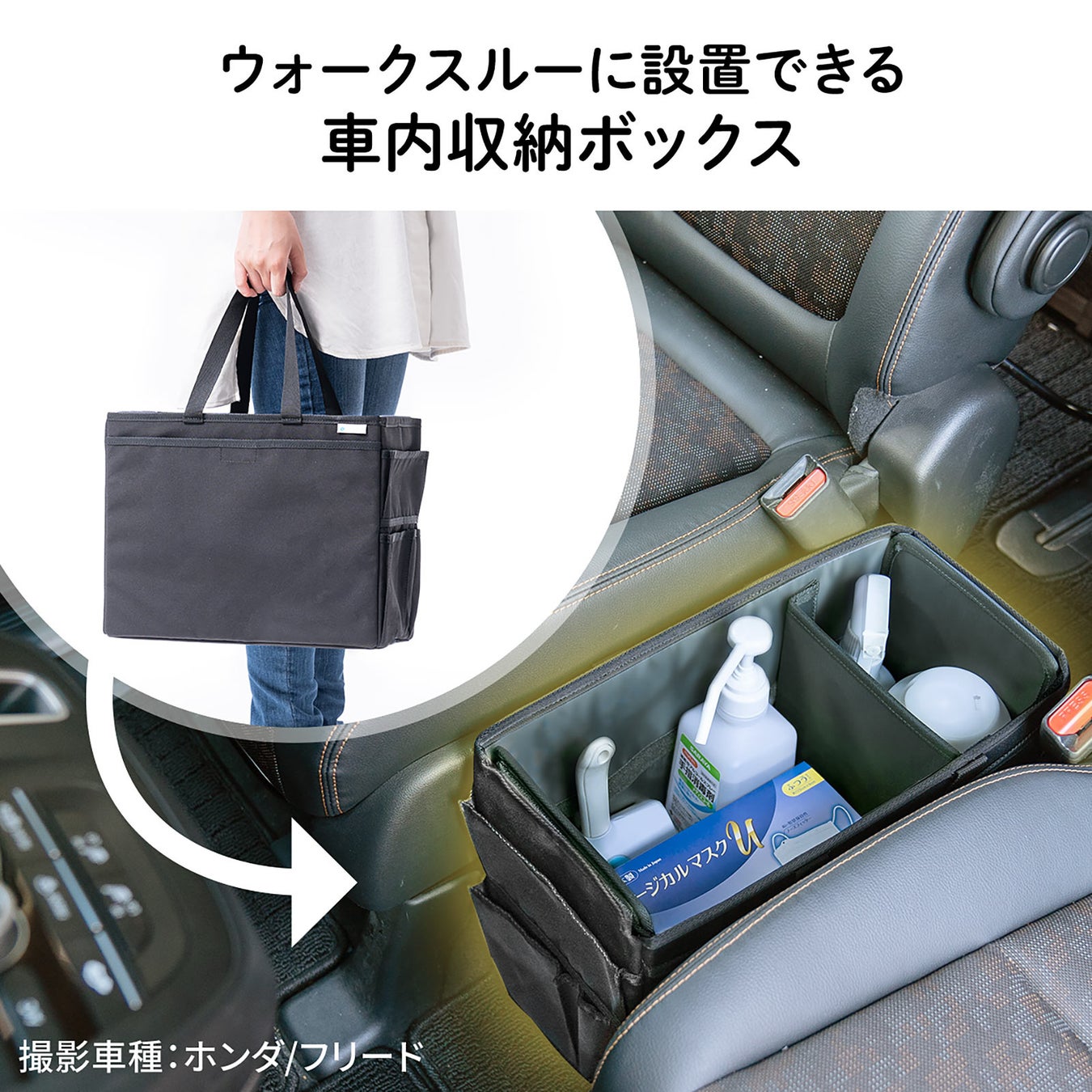 シート間のウォークスルー部分に設置することで、小物を手軽に出し入れできます。