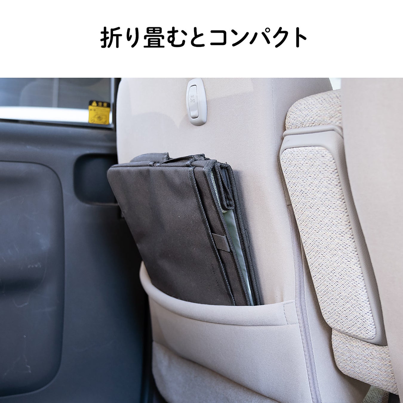 使用しない時は折り畳んで、シート背面のポケット等に収納できます。