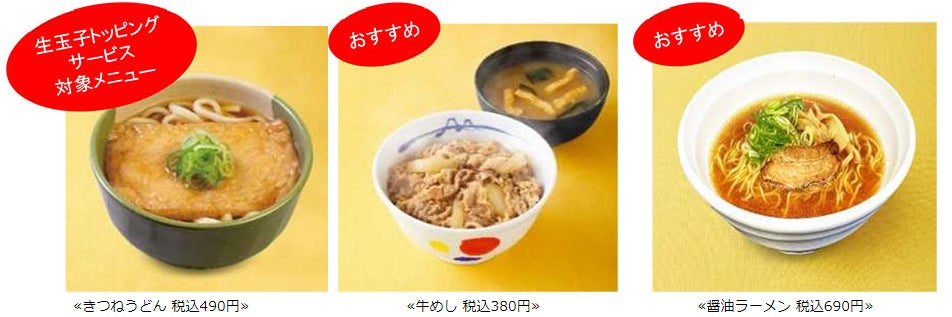 高速道路店舗限定メニューのうどん・そばをご注文のお客さまに生玉子のサービス。
