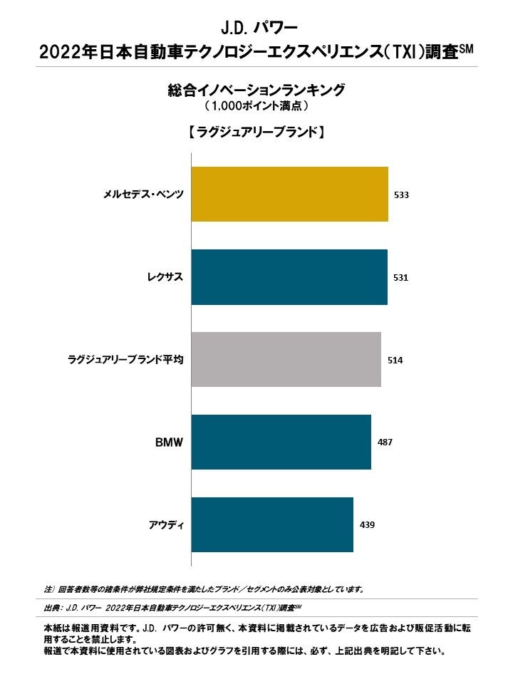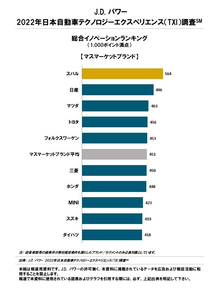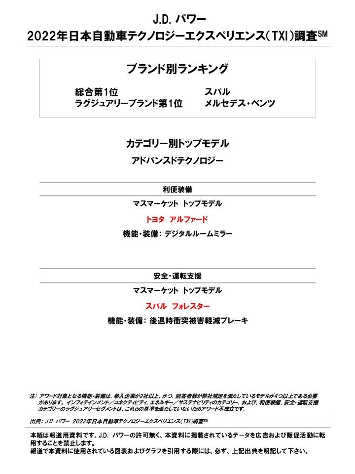 (本社:東京都港区、代表取締役社長:山本浩二、略称:J.D. パワー)は、2022年 日本自動車テクノロジーエクスペリエンス(Tech Experience Index、略称TXI)調査℠の結果を発表した。