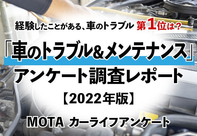 「モビリティテックでクリアな自動車売買の体験を。」の実現を目指す株式会社MOTA(本社:東京都港区、代表取締役社長:佐藤 大輔、以下「MOTA」)は、2022年11月に、現在自家用車を所有し、月に1回は運転をする方を対象に「車のトラブル&メンテナンスに関するアンケート」を実施しました。今回は、その結果をレポートします。