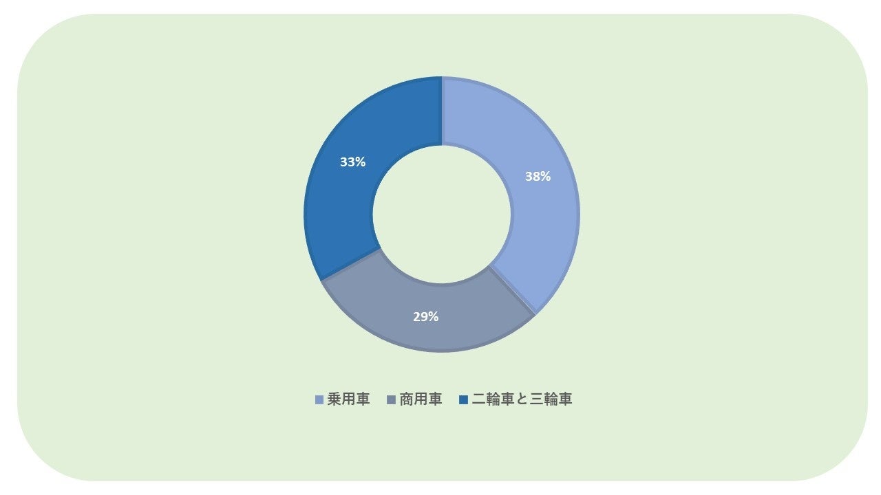 市場は車両の種類によって、乗用車、商用車、二輪車、三輪車に分かれています。