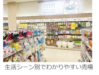 - 生活シーン別の売場で、赤ちゃんと過ごす毎日をイメージしやすいこだわりの売場