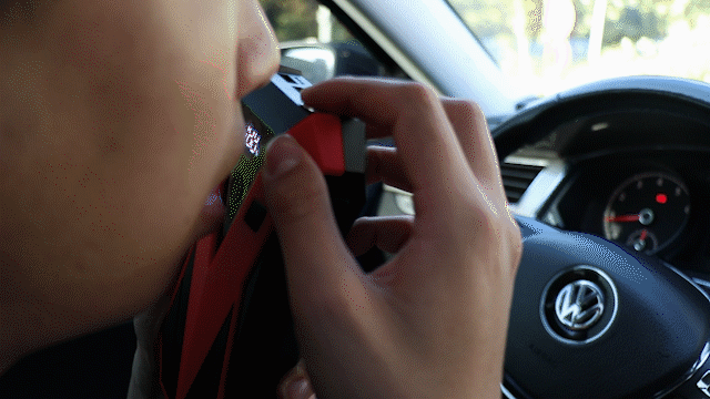 アルコール検知ボタンを押し、吹き込み口に向けて息を吹き続けることで、アルコール度数(mg/100mL)が表示されます。