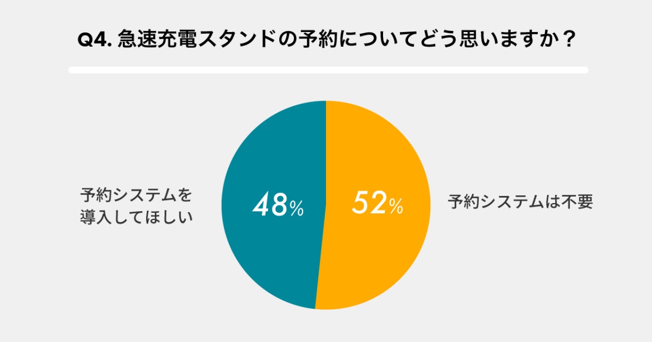 今回のアンケート結果から、「予約システムを導入してほしい」方も、「予約システムは不要」という方も、「充電したい時に待たずに充電できるようになってほしい」という想いは共通しているように感じました。
