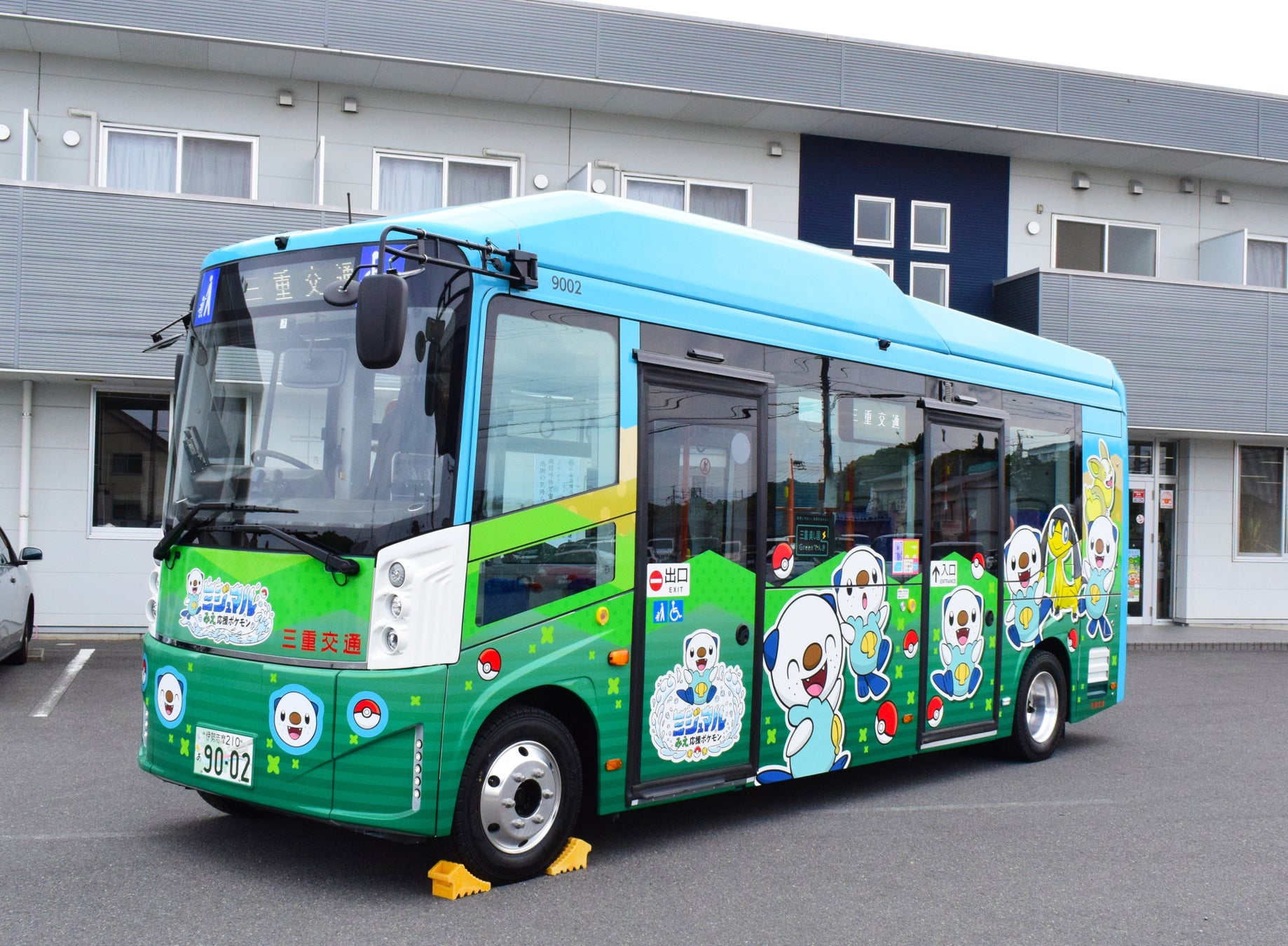 この度三重交通が運行を開始するEVバスは、国、三重県、伊勢市が推進する「低炭素なまちづくり」の実現に向けた取組みを幅広い年代層に知っていただくため、三重県と包括連携協定を締結している株式会社ポケモンより、取り組みへの賛同とデザイン協力を受け、みえ応援ポケモンとして任命されている「ミジュマル」をはじめ、でんきタイプのポケモンたちがデザインされたラッピングが施されました。また、EVバス運行には、中部電力ミライズが提供する再生可能エネルギー「三重美し国(うましくに)Greenでんき(※1)」が使用されます。当該電気は通常の電気と比較し、年間約29t の CO₂ 削減効果が期待できます(※2)。