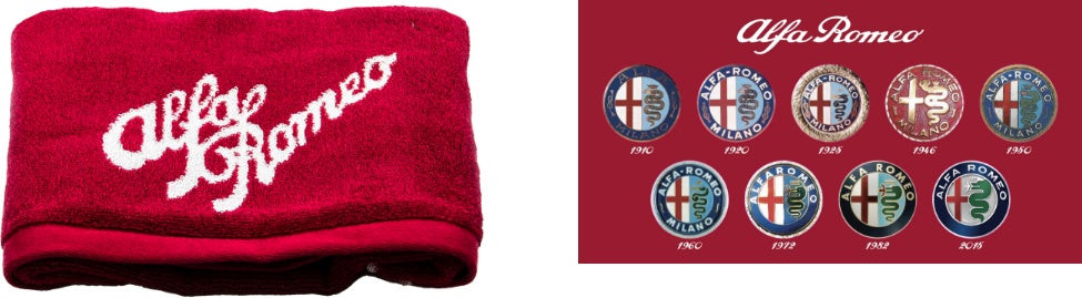 | ディーラーでのご試乗予約・お見積依頼でプレゼント:Alfa Romeo オリジナル 今治タオル & 歴代エンブレムステッカー |