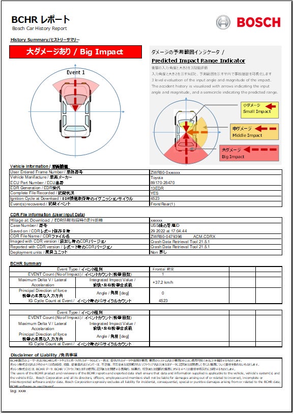 ボッシュ株式会社(代表取締役社長:クラウス・メーダー 以下 ボッシュ)は、このたびEDRのデータを活用することで正確で効率的な車両評価を可能にする世界初の新技術、Bosch Car History Report(BCHR)を公開いたします。