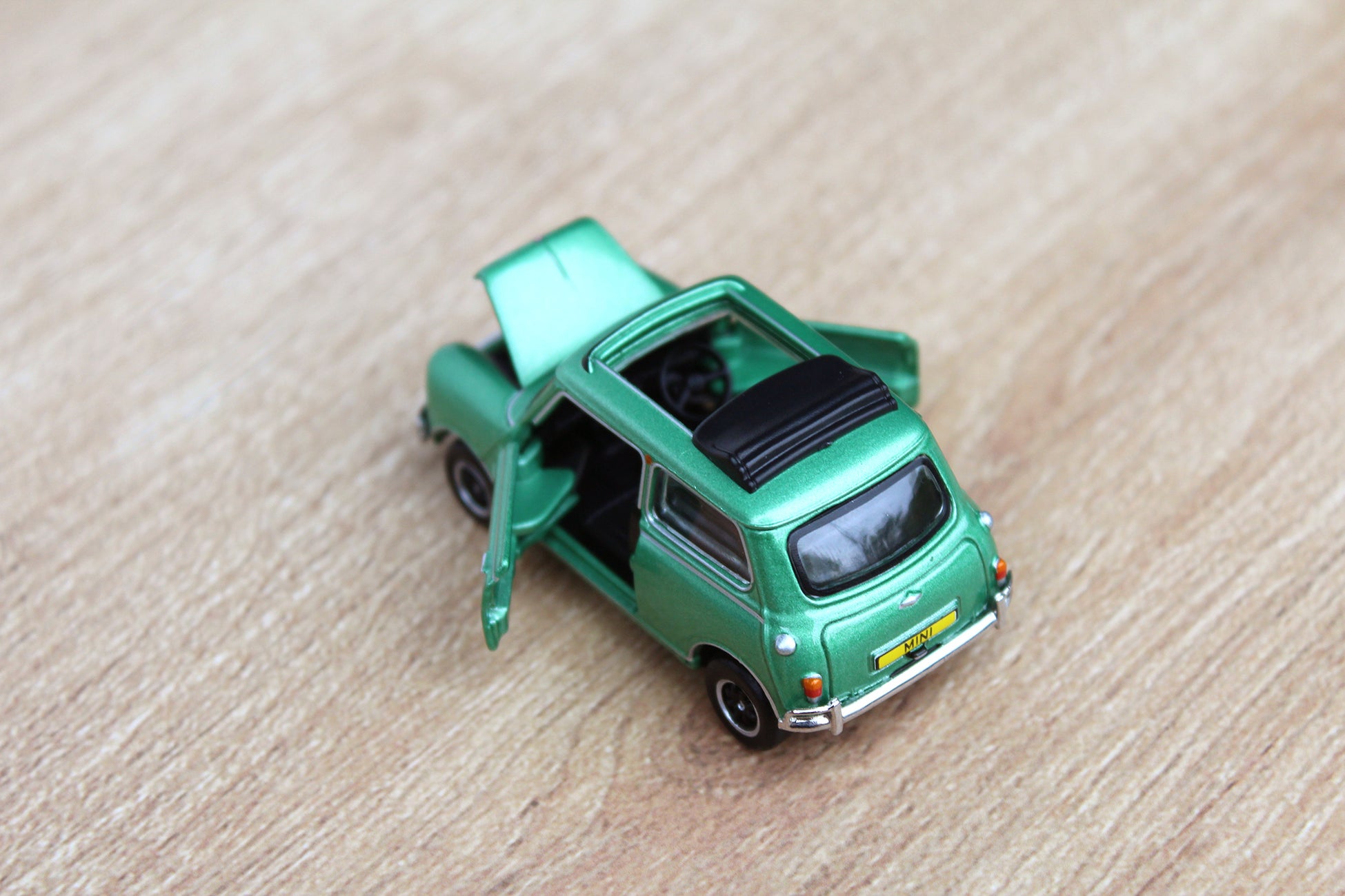 ダイキャスト製のミニクーパーは、1/50スケールでありながらもハンドルや座席など内装まで精巧に再現されており、細部まで見て楽しむことができます。ホイールやバンパー、ヘッドライトも細かく再現されており、ドアとボンネットが開く遊び心たっぷりのギミックつきです。