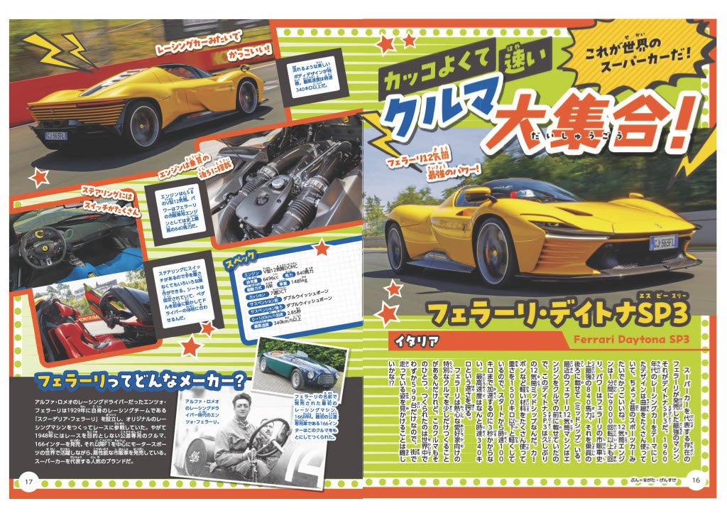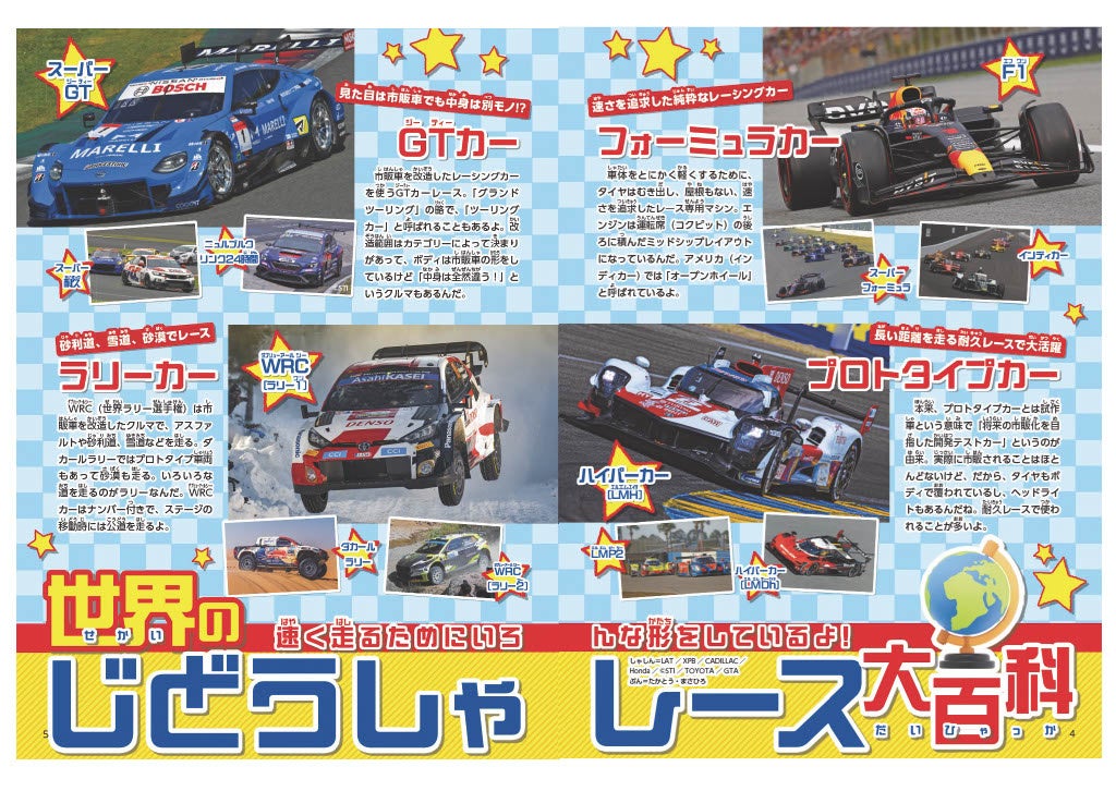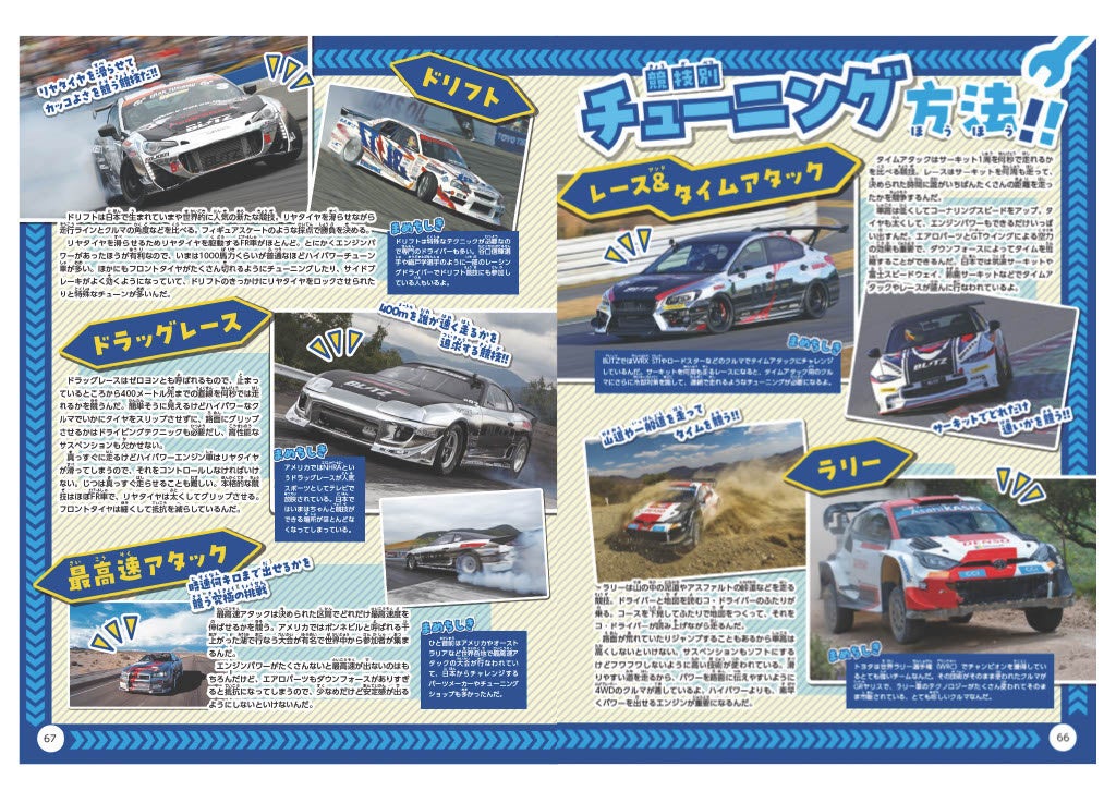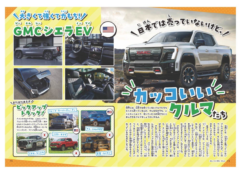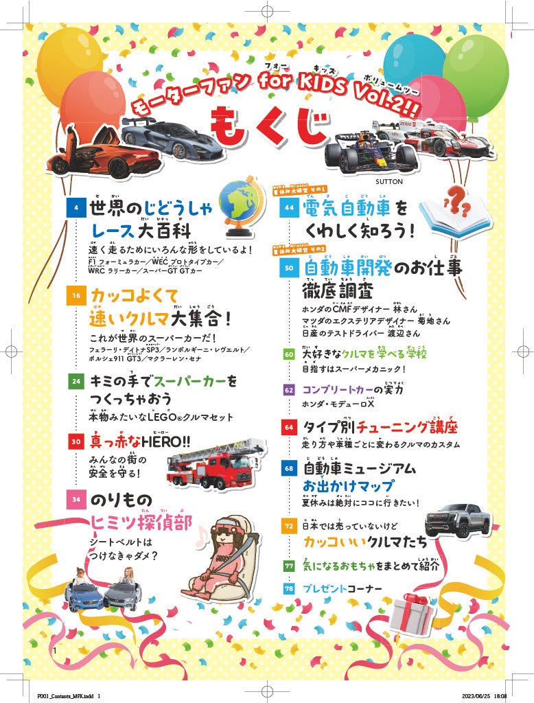 「クルマ好きの子どもを増やしたい」というコンセプトで、見て楽しめる、読んで楽しい内容の当誌は、メイン読者の幼児から小学校低学年のお子さんを対象として、すべての漢字にふりがなをふっているため、まだ漢字を習う前のお子さまでもお読みいただけます。