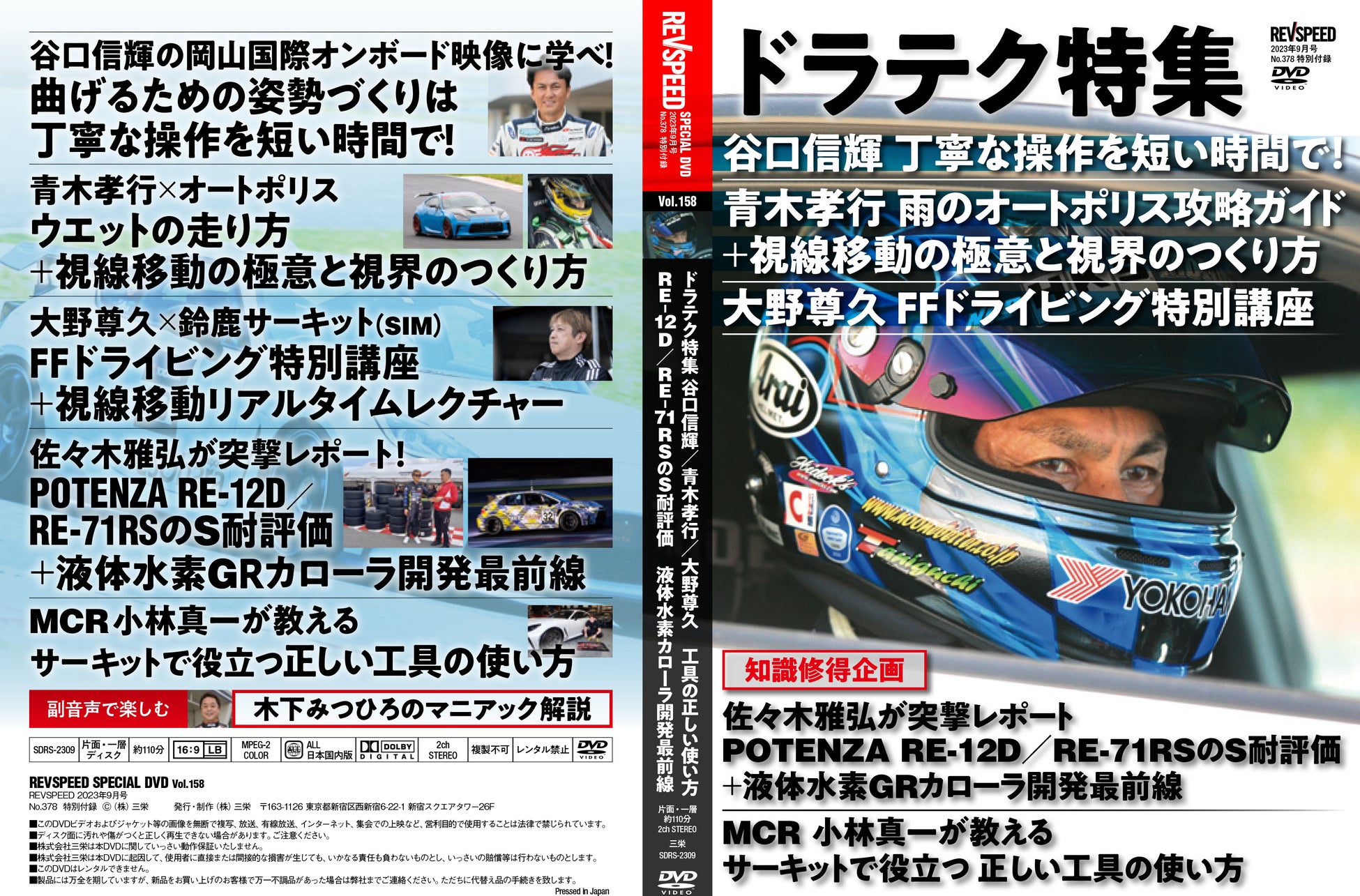 付録DVDは谷口信輝が、彼のドライビングの真髄である『曲げるための操作はとっても丁寧に短い時間で』を岡山国際サーキットで実践レクチャー。青木孝行はオートポリスで『ウエット路面の走り方 オートポリス編』と『視線移動の極意&広い視界のつくり方』をたっぷりアドバイス。大野尊久は『FFドライビング&視線移動リアルタイムレクチャー』をレーシングシミュレーターで解説。佐々木雅弘は富士スーパーテック24時間レースのレースウィークに『POTENZA RE-12D & RE-71RS装着チーム取材⇒履いてみてどう?』と『液体水素GRカローラ取材⇒その先進技術は?』のレポーターを務めます。MCR小林真一は『サーキットの現場で役立つ工具の正しい使い方』を伝授! 副音声はお馴染み『木下みつひろマニアックトーク』です。