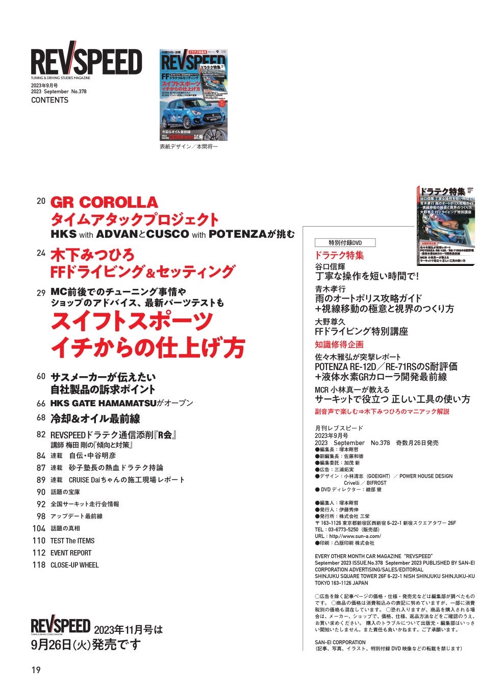 株式会社三栄(本社所在地:東京都新宿区、代表取締役社長:伊藤秀伸)は、2023年7月26日より『REVSPEED(レブスピード) 2023年9月号』を発売いたします。