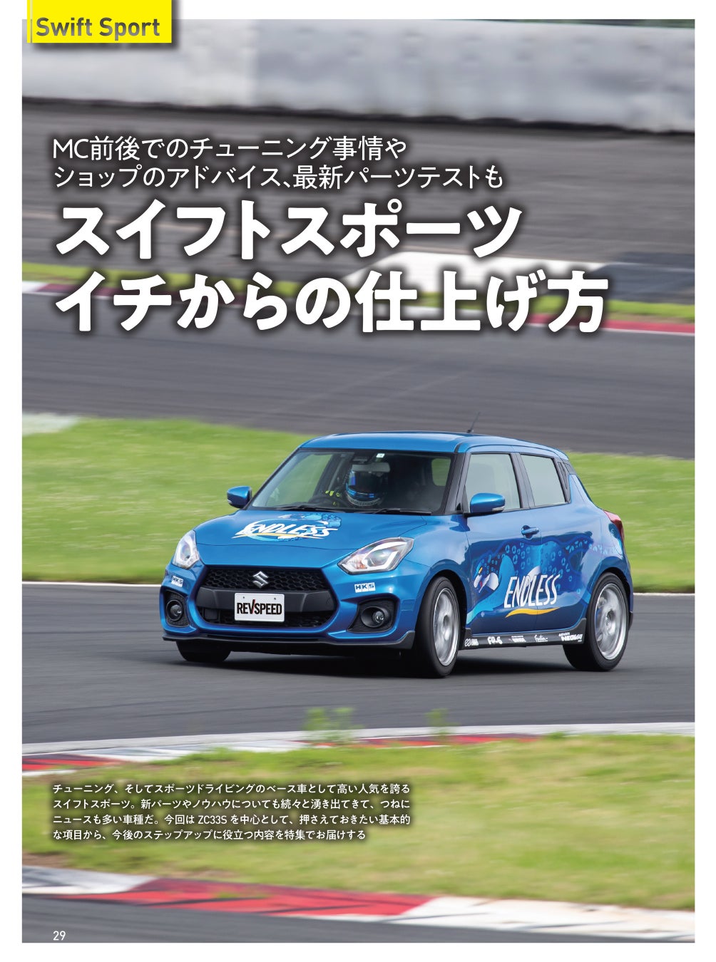 誌面特集『スイフトスポーツ』は最新チューニング情報と「これからこのクルマを楽しみたい人」のためにイチからのカスタマイズアドバイスを満載。木下みつひろの『FFドライビング&セッティング』もこの特集に絡めてお届けしています。『冷却&オイル最前線』は各メーカーのこだわりと気になる最新アイテムを紹介。そのほか、GRカローラ、サスペンション、ホイールのホットな話題と注目パーツのテストレポートも掲載しています。