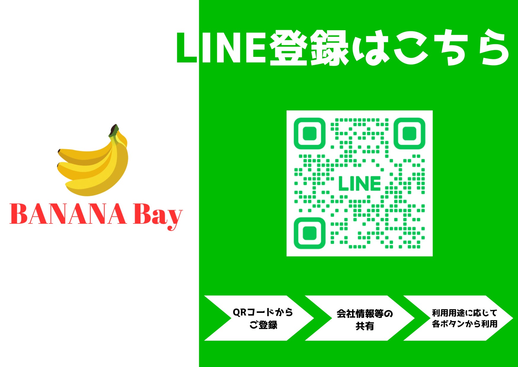 株式会社BANANA(大阪府茨木市横江1丁目17番6号)が運用するBANANA Bayが公式LINEをOPENしました。これにより公式LINE上で下記の機能を利用いただく事ができるようになりました!