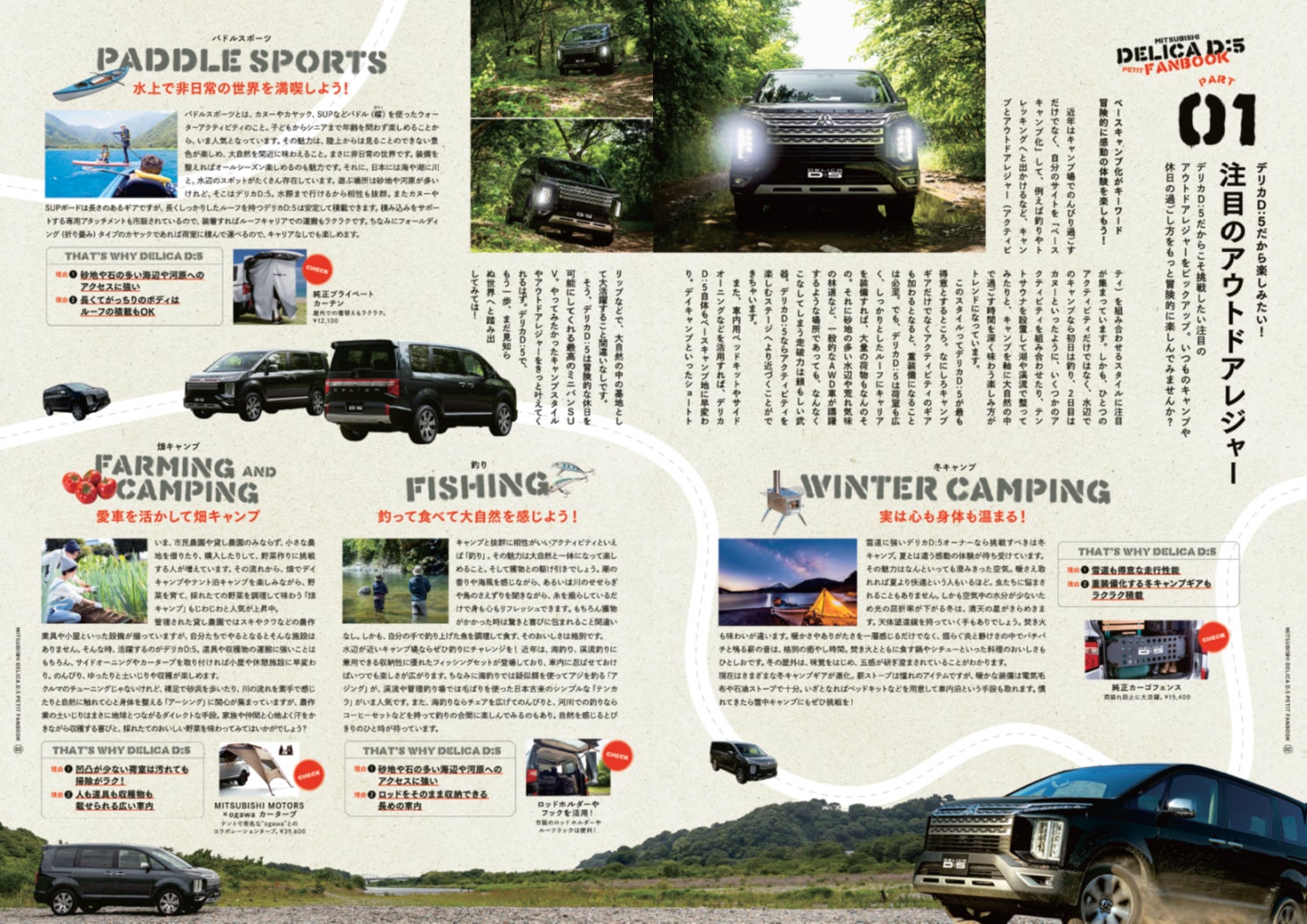 誌面では、デリカで行きたいアウトドアレジャー情報やデリカの系譜などを紹介!