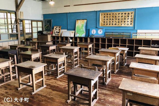 会場は、明治12(1879)年に創立された「旧上岡小学校」。茨城県内の小学校校舎としては旧水海道小学校玄関に次いで二番目に古く、現地保存されているものでは県内最古の校舎であり、木造平屋造りの校舎の佇まいや、木のサッシにはめられた古い窓ガラスの趣き、落書きや削り跡が残る木の机や椅子など、そのノスタルジックな佇まいから数々のドラマや映画のロケ地になっています。