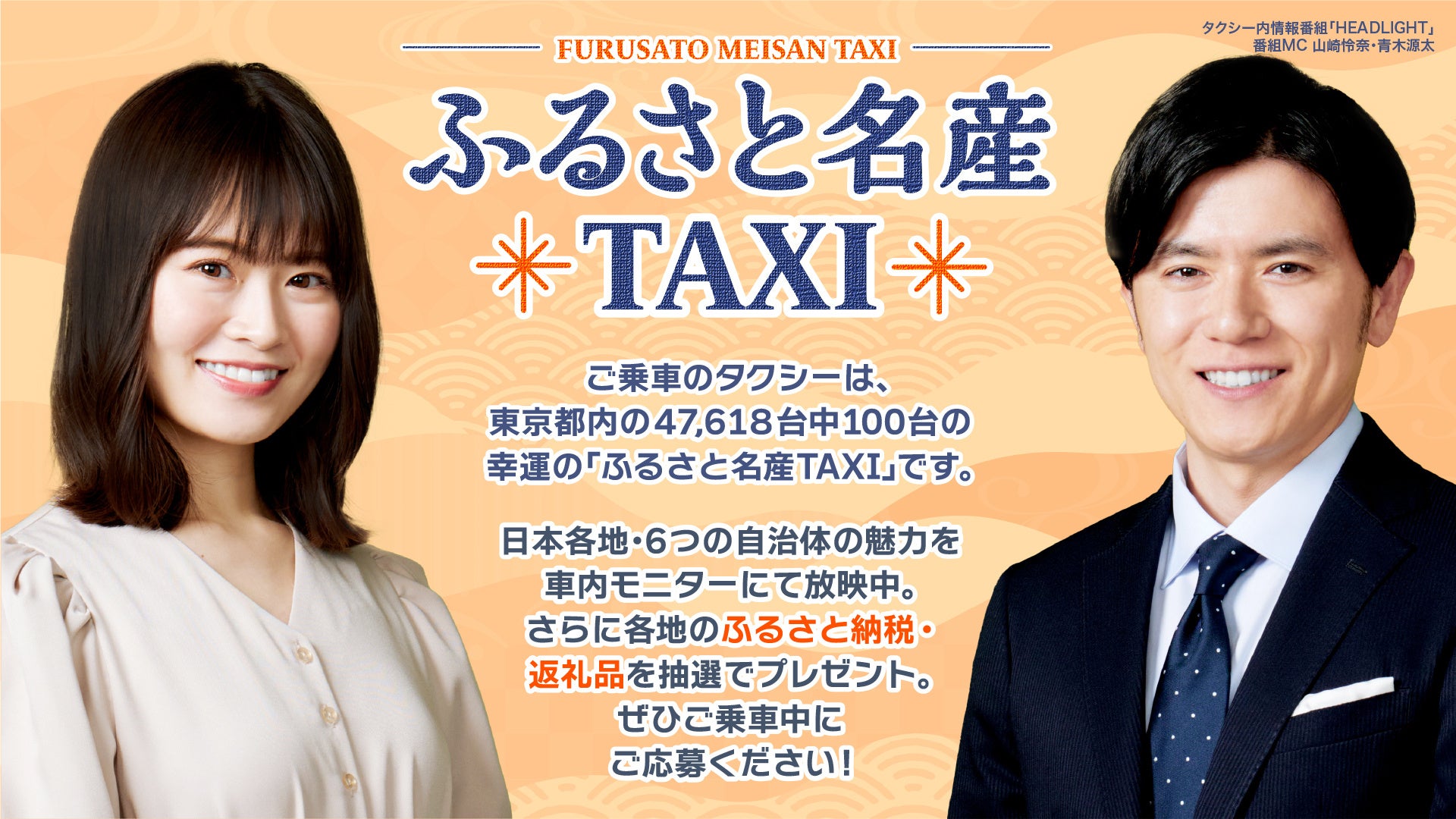 モビリティ車窓メディア「Canvas」では、これまで、年末年始の「お年玉タクシー」、バレンタインシーズンの「バレンタインタクシー」、ゴールデンウィークの「ENJOY HOLIDAY! TAXI」といった、タクシー利用者を対象にした期間限定のギフトタクシー企画を実施してまいりました。多くの方からの応募を獲得し、ご好評をいただいているギフトタクシー第四弾として、都内100台限定の「ふるさと名産タクシー」が登場します。