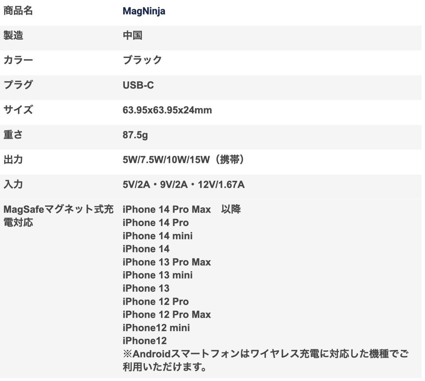 MagNinjaは、最大15Wでの快速充電が可能です。