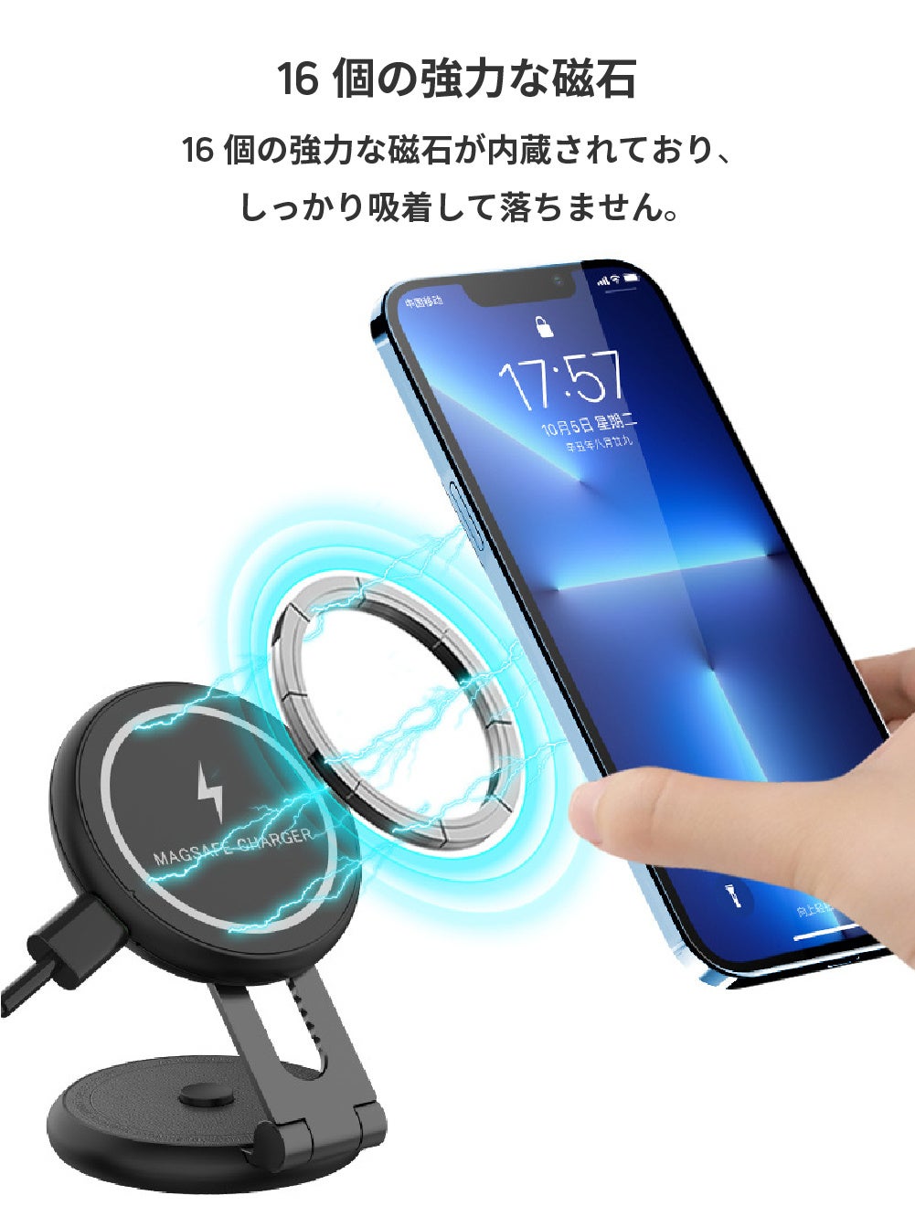 MagSafeに対応しているため、スマートフォンをしっかり磁気吸着しながら充電を行えます。
