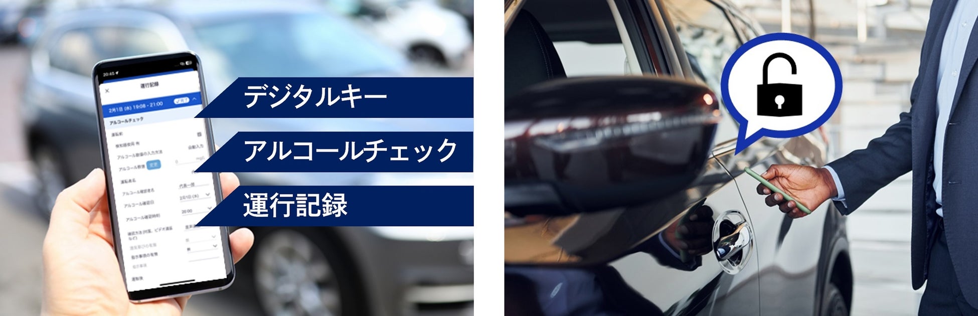 (左)アルコールチェックのイメージ、(右)車両ドアを解錠するイメージ