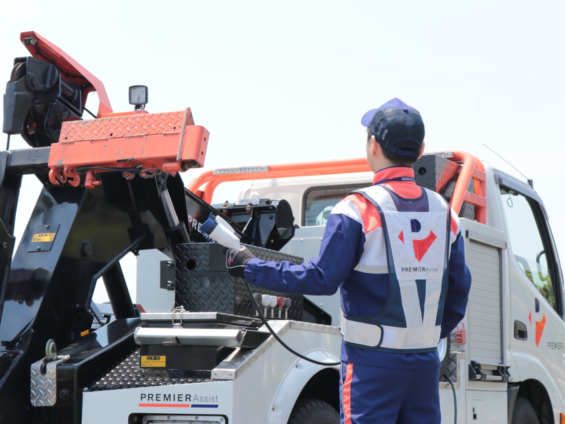 株式会社プレステージ・コアソリューションが「ENEOS Charge Plus法人充電会員カード」の利用者からの依頼をコンタクトセンターで受け付け、現場対応の手配を行い、株式会社プレミアアシストをはじめとする「PREMIER Assist」ブランドのサービスセンターからEV給電車で現場に駆け付けます。道路状況や配車都合により現場での充電ができない場合は、利用者の指定先まで車両を搬送します。