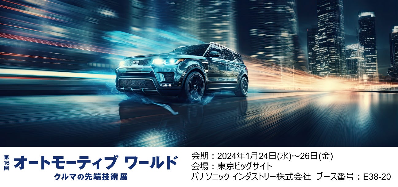 パナソニック インダストリー株式会社(以下、当社)は、2024年1月24日(水)から1月26日(金)まで東京ビックサイトにて開催される、クルマの先端技術分野における世界最大級の展示会「第16回 オートモーティブ ワールド -クルマの先端技術 展-」に出展します。